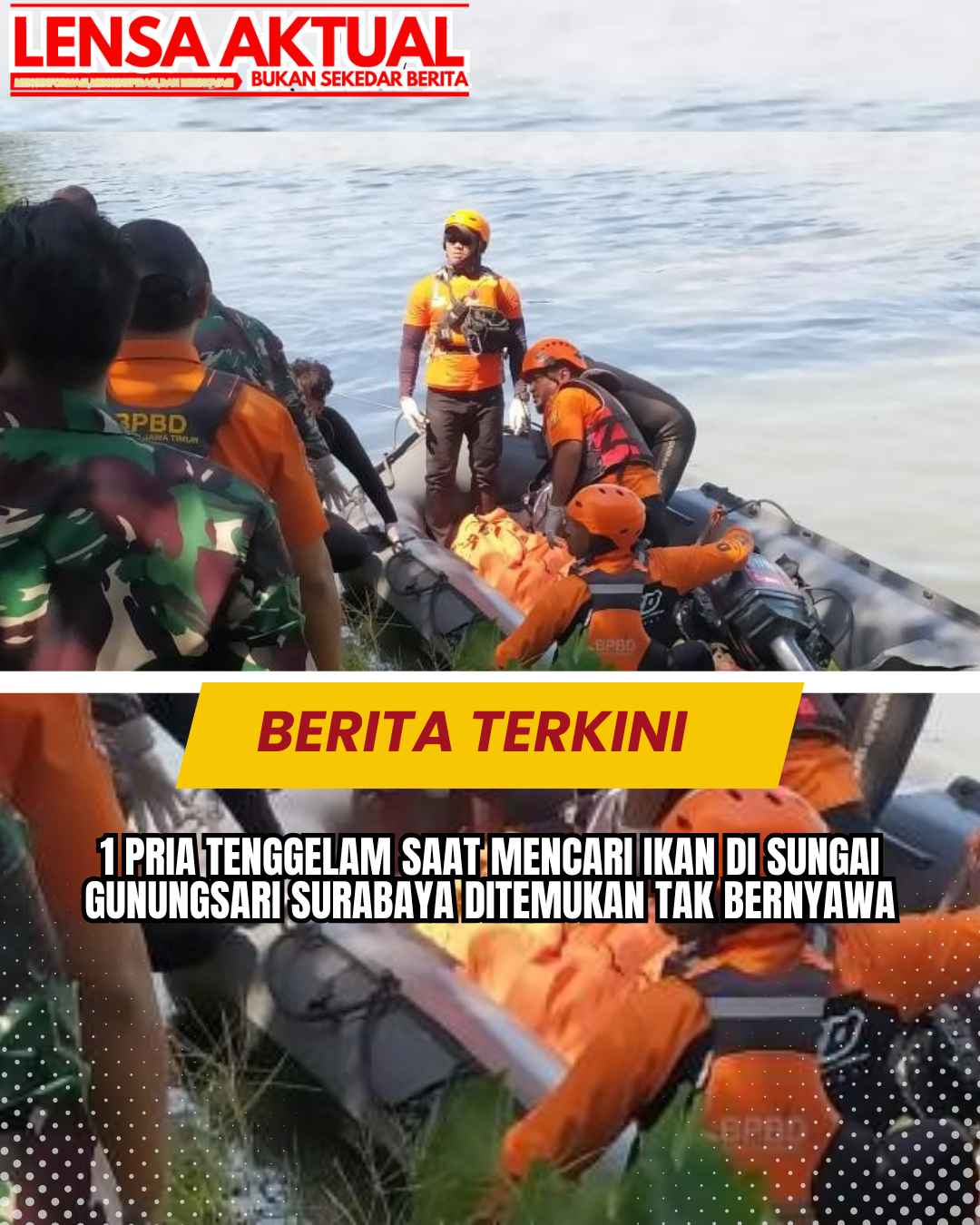 - Dua orang pria dewasa yang hendak menjaring ikan dikabarkan tenggelam hilang di tengah aliran Sungai Brantas Rolak Gunungsari, Surabaya, sekitar pukul 11.00 WIB