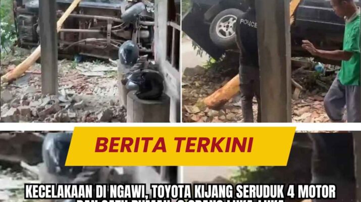 Kecelakaan di Ngawi, Toyota Kijang Seruduk 4 Motor dan Satu Rumah, 8 Orang Luka-luka