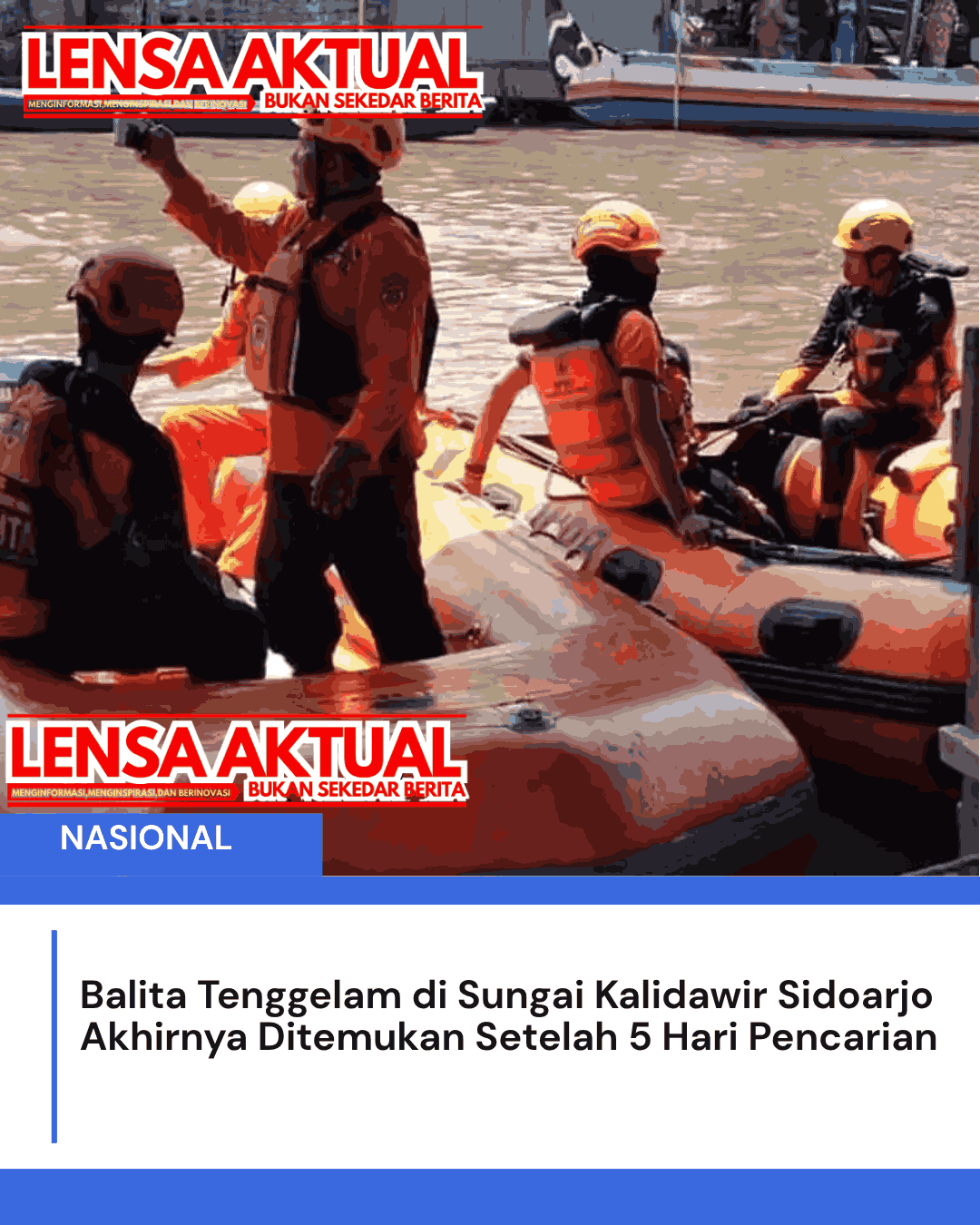 ww.LensaAktual.com.ǁJawaTimur,12 April 2026-Pencarian balita yang tenggelam di Sungai Kalidawir, Sidoarjo, akhirnya berujung duka.