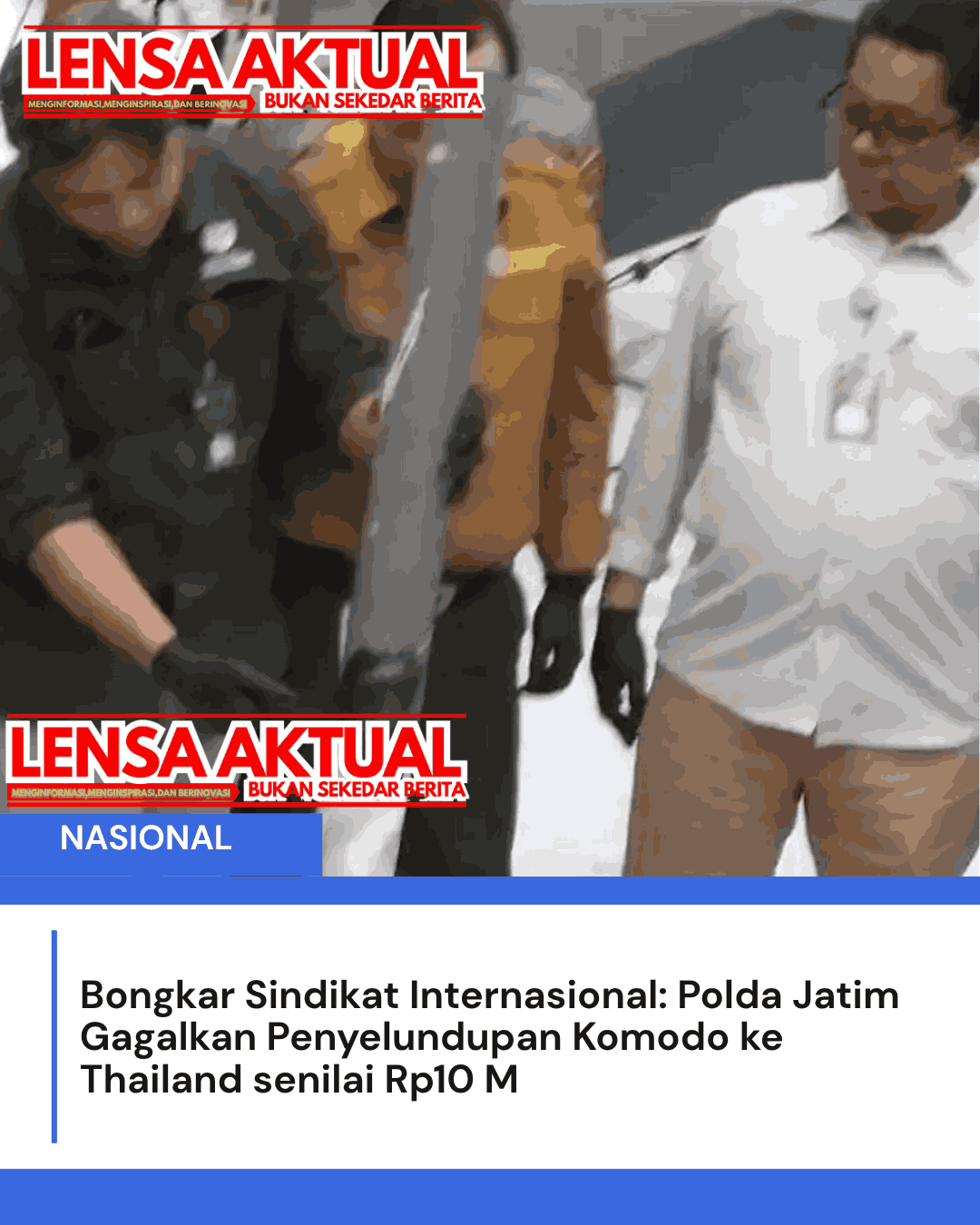ww.LensaAktual.com.ǁJawaTimur,15 April 2026-Enam orang ditetapkan sebagai tersangka dalam kasus sindikat penyelundupan reptil Komodo asal Manggarai Timur, Nusa Tenggara Timur (NTT) ke negara Thailand yang berhasil digagalkan pada Bulan Maret 2026.