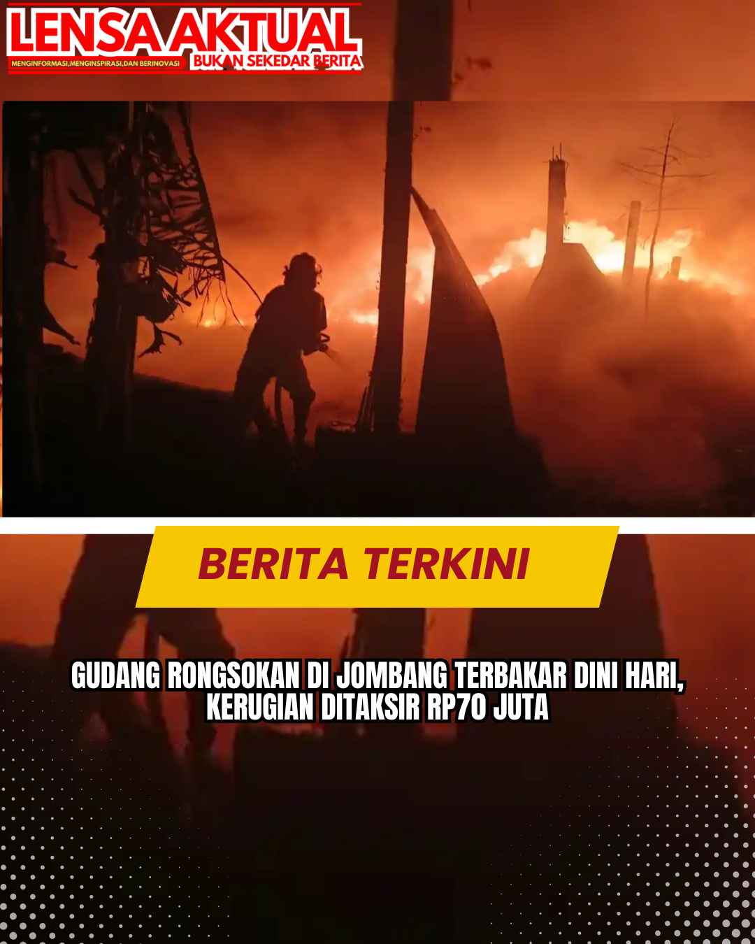 www.LensaAktual.com.ǁJawaTimur,16 Maret 2026-Gudang penyimpanan barang rongsokan di Dusun Winong RT 03 RW 02, Desa Johowinong, Kecamatan Mojoagung, Kabupaten Jombang, Jawa Timur terbakar pada Senin (16/3/2026) dini hari.