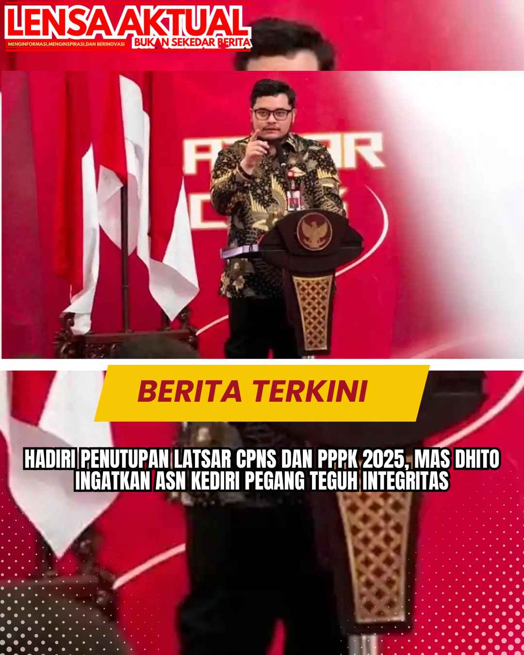 www.LensaAktual.com.ǁJawaTimur,5 Desember 2025-Bupati Kediri, Hanindhito Himawan Pramana hadiri penutupan Pelatihan Dasar (Latsar) Calon Pegawai Negeri Sipil (CPNS) dan Orientasi Pegawai Pemerintah dengan Perjanjian Kerja (PPPK) Kabupaten Kediri Tahun 2025 di Convention Hall SLG Kediri, Jawa Timur, Kamis (4/12/2025).