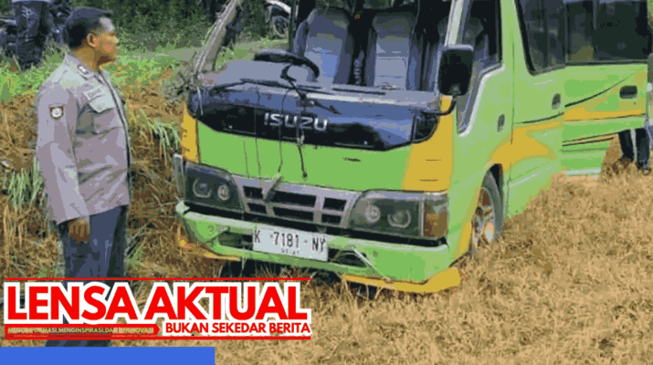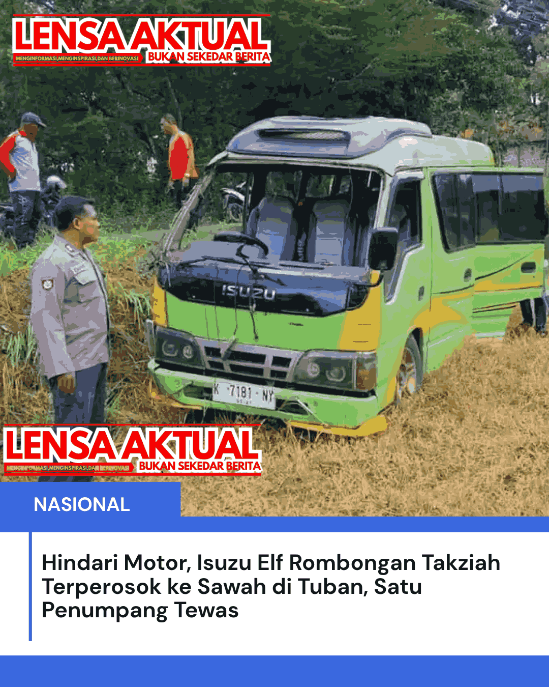 ww.LensaAktual.com.ǁJawaTimur,28 April 2026-Sebuah mobil Isuzu Elf yang membawa rombongan takziah warga Kecamatan Bancar, Kabupaten Tuban, terperosok ke area persawahan di Jalan Raya Jatirogo–Jepon, Desa Sidohasri, Kecamatan Kenduruan, Selasa (28/4/2026) pagi.