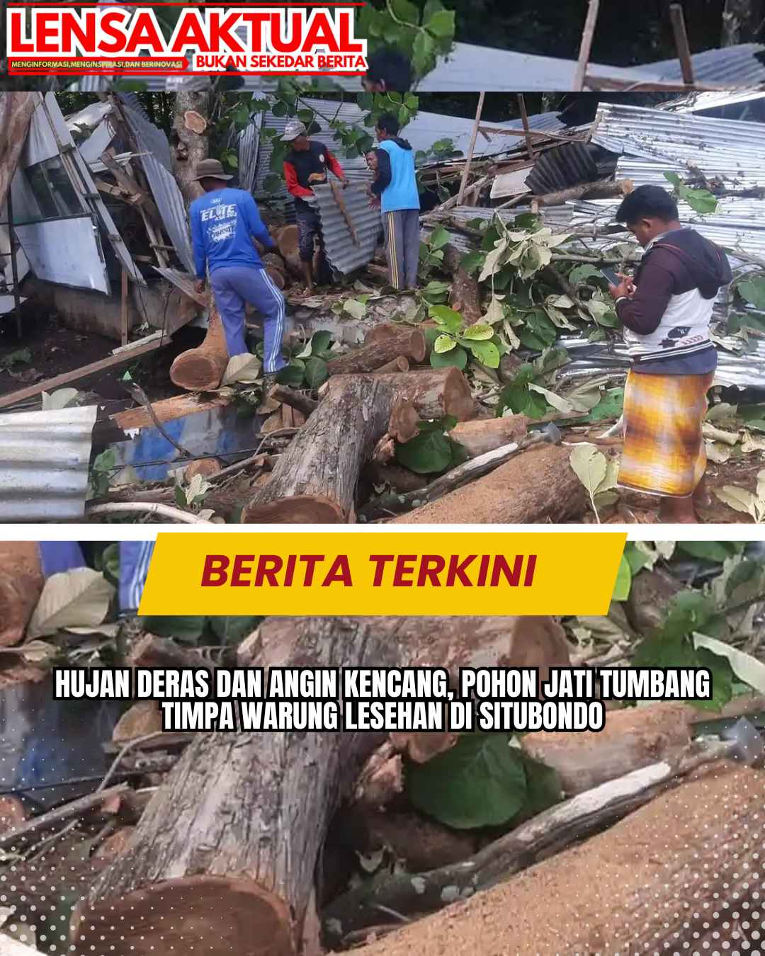 www.LensaAktual.com.ǁJawaTimur,5 Februari 2026-Pohon tumbang menimpa warung lesehan di pinggir jalan raya Desa Pasir Putih, Kecamatan Bungatan, Kabupaten Situbondo, Jawa Timur pada Rabu (04/02/2026) malam.