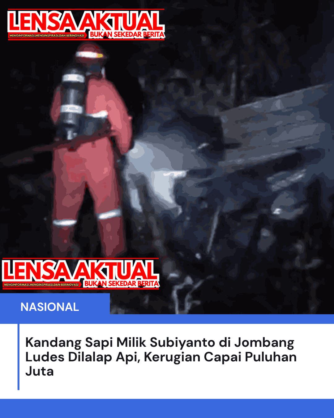 ww.LensaAktual.com.ǁJawaTimur,27 April 2026-Kebakaran terjadi di sebuah kandang sapi milik seorang warga di Dusun Kalangan, Desa Kalangsemanding, Kecamatan Perak, Kabupaten Jombang, Senin (27/4/2026) dini hari.