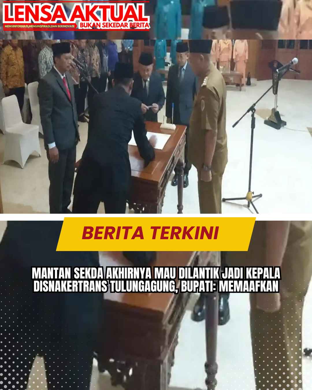 www.LensaAktual.com.ǁJawaTimur,16 Desember 2025-Mantan Sekretaris Daerah (Sekda) Kabupaten Tulungagung, Tri Hariadi akhirnya dilantik menjadi Kepala Dinas Tenaga Kerja dan Transmigrasi (Disnakertrans).