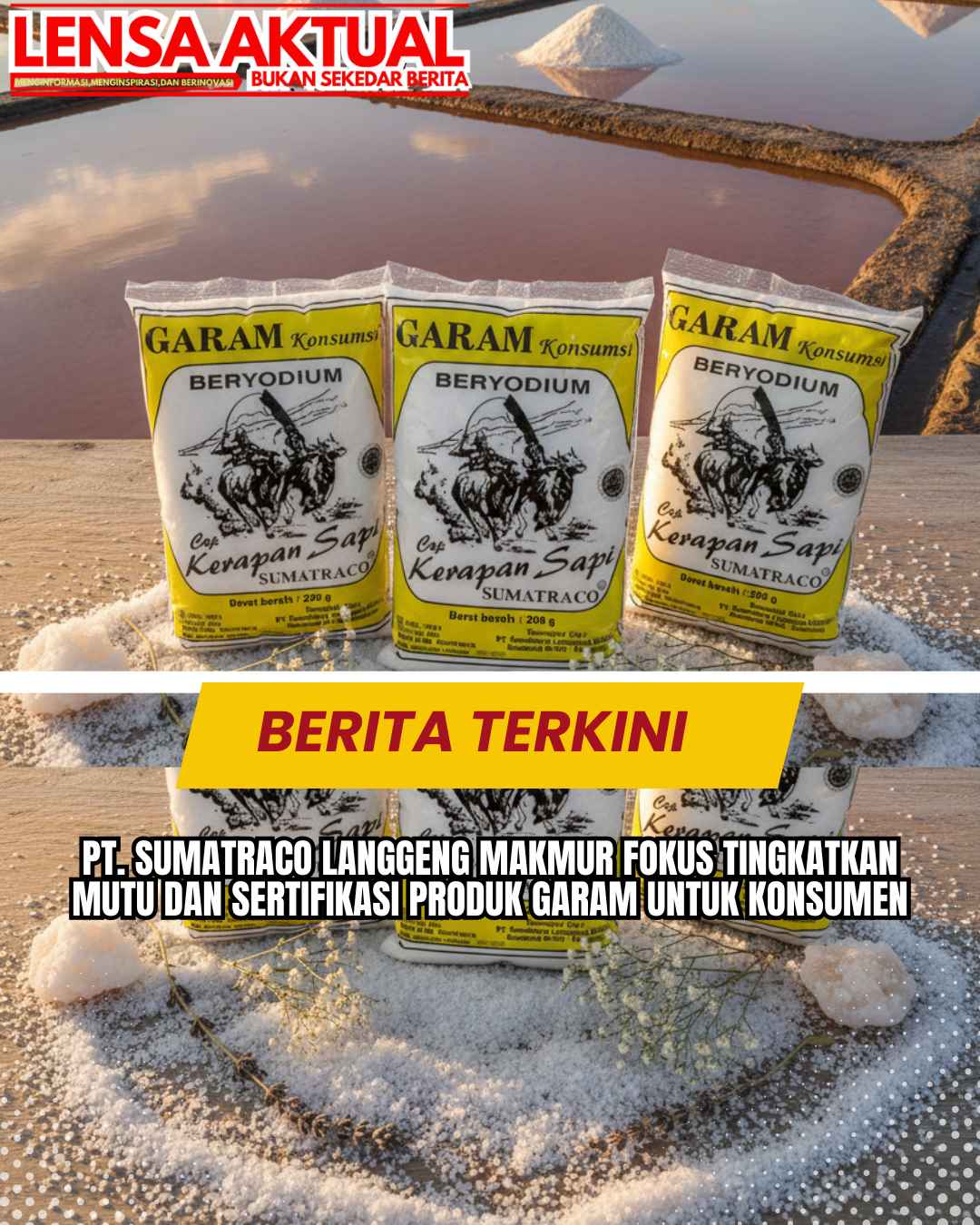 www.LensaAktual.com.ǁJawaTimur,20 November 2025-PT.Sumatraco Langgeng Makmur, salah satu perusahaan pengolahan garam yang berbasis di Surabaya, menegaskan komitmennya untuk terus meningkatkan kualitas produk melalui penguatan standar produksi serta percepatan proses sertifikasi. Langkah ini dilakukan sebagai upaya menjawab kebutuhan pasar yang semakin menuntut jaminan mutu, keamanan pangan, dan konsistensi kualitas.