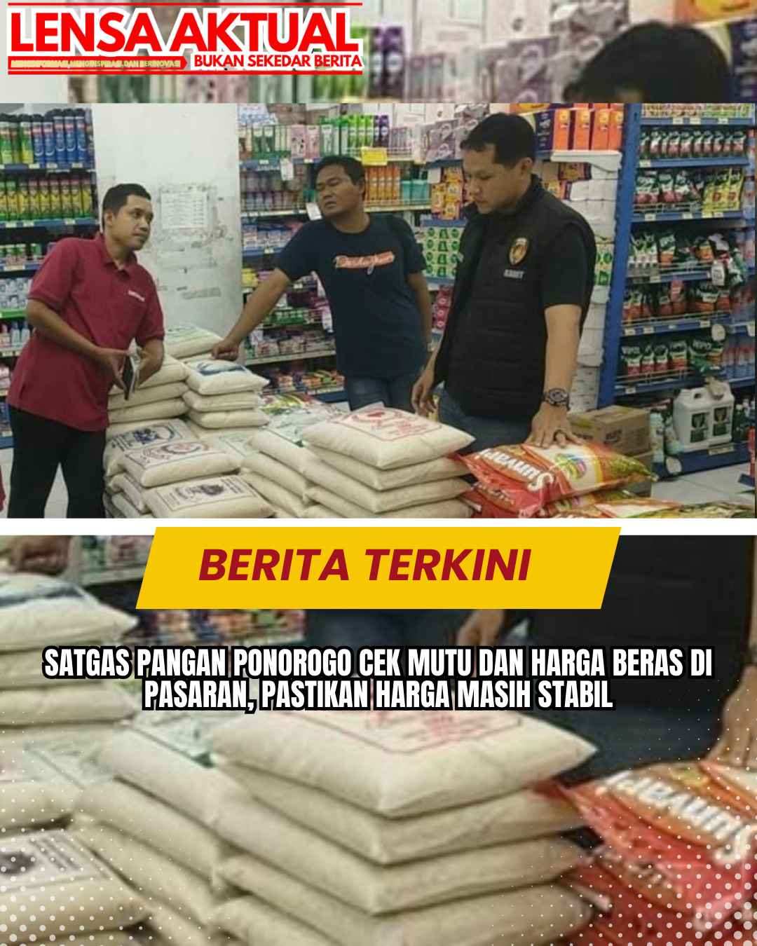 www.LensaAktual.com.ǁJawaTimur,30 Oktober 2025-Satgas Pangan Ponorogo bersama Bulog Ponorogo, Dinas Perdagangan, Koperasi dan UMKM (Disperdagkum), lalu ada Dinas Pertanian, Perikanan dan Ketahanan Pangan (Dipertahankan) harga serta mutu beras di pasaran.